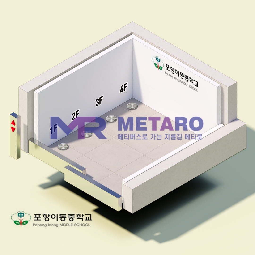 또한 각 층 간의 이동을 원활하게 하기 위해 엘레베이터 공간도 따로 제작하였습니다. 원하는 층 발판으로 이동하시면 해당 층으로 입장됩니다.